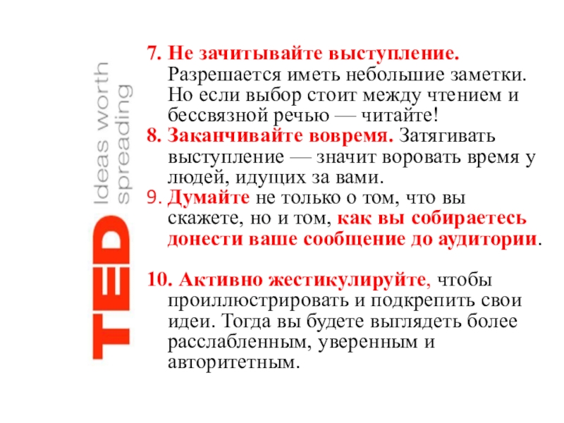 9. Думайте не только о том, что вы скажете, но и том, как вы собираетесь донести ваше сообщение до аудитории.