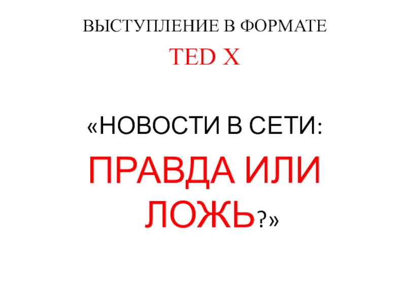 ВЫСТУПЛЕНИЕ В ФОРМАТЕ TED X«НОВОСТИ В СЕТИ: ПРАВДА ИЛИ ЛОЖЬ?»