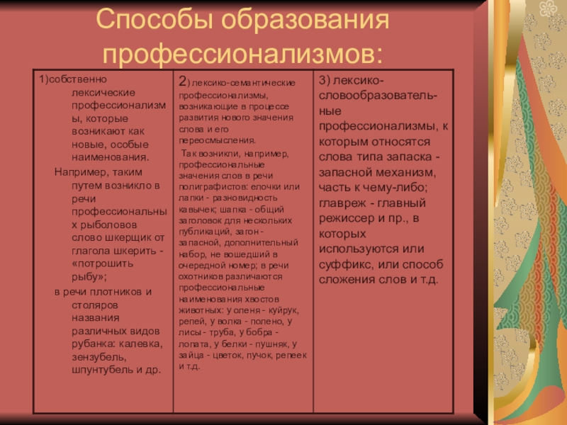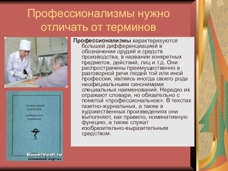 Профессионализмы - слова, употребляемые людьми одной профессии. Часто профессиональные слова
