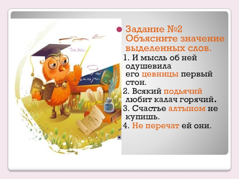 Слайд 34Задание №2 Объясните значение выделенных слов.