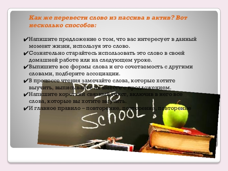 Слайд 31Как же перевести слово из пассива в актив? Вот несколько способов: