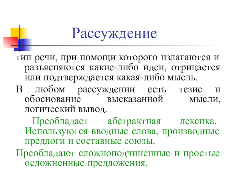 В любом рассуждении есть тезис и обоснование высказанной мысли, логический вывод.