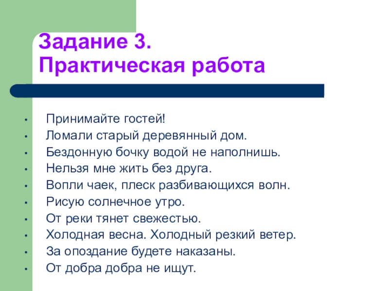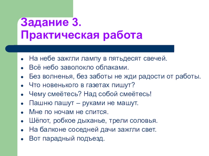 Выполнить работу над ошибками (подобрать свои примеры к заданиям,