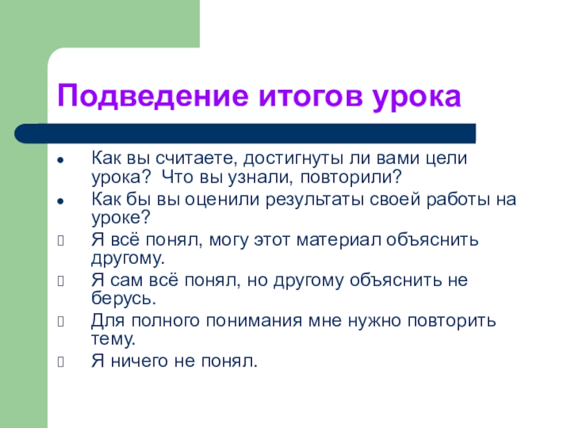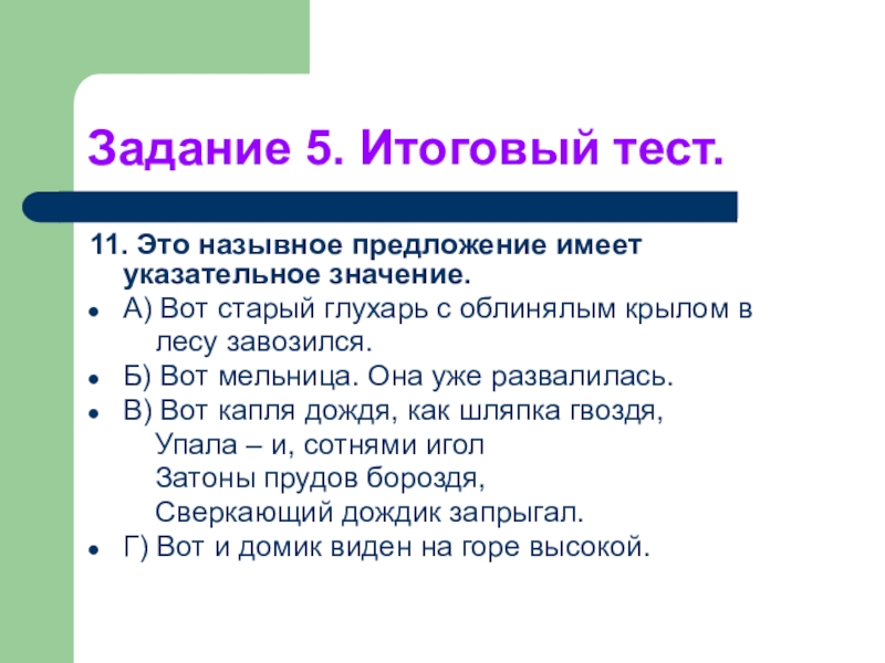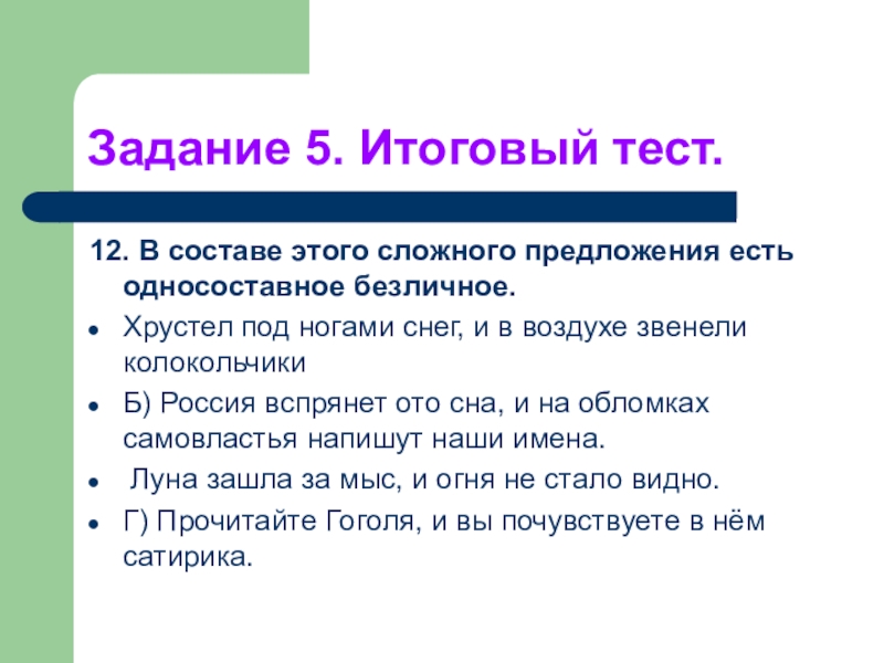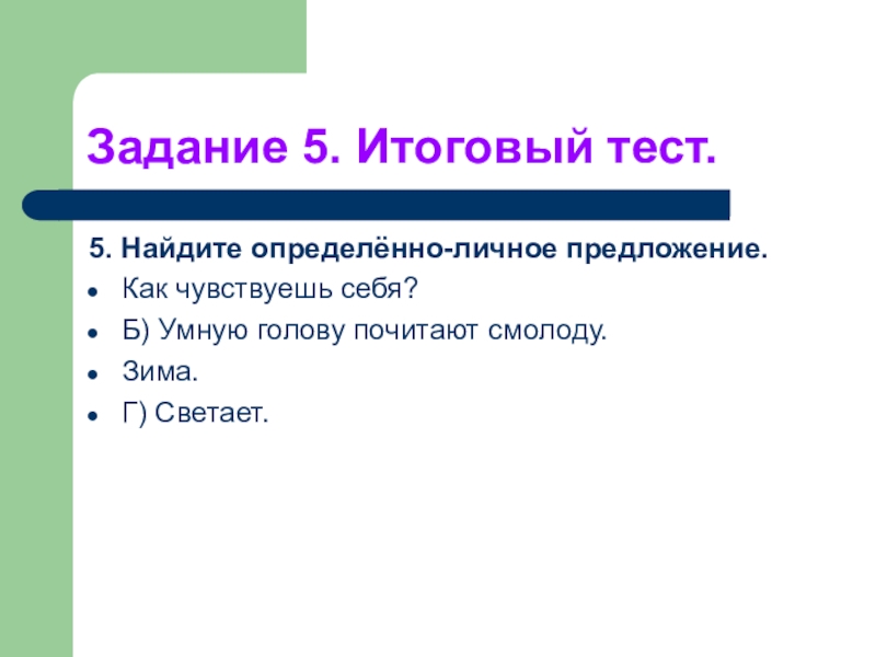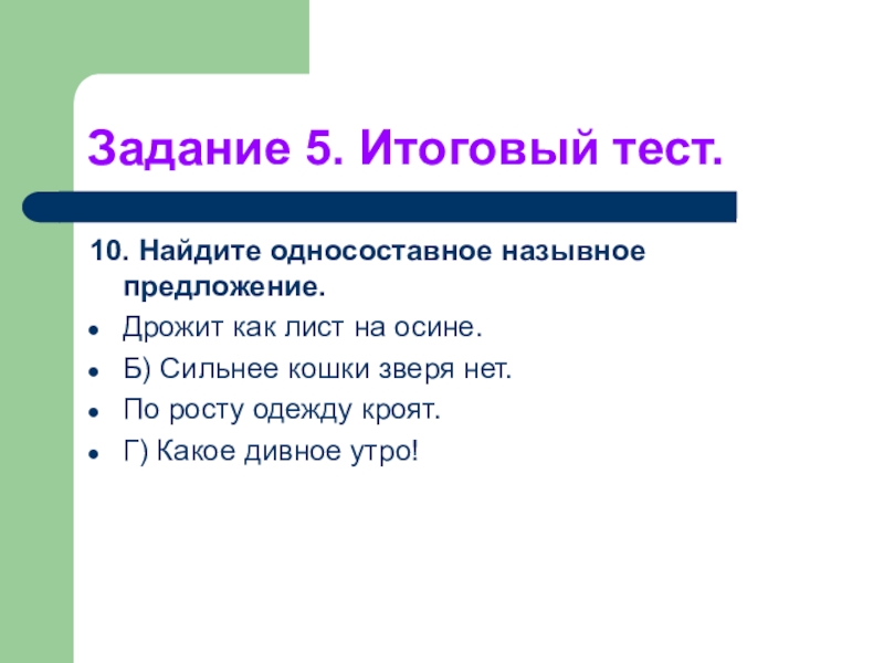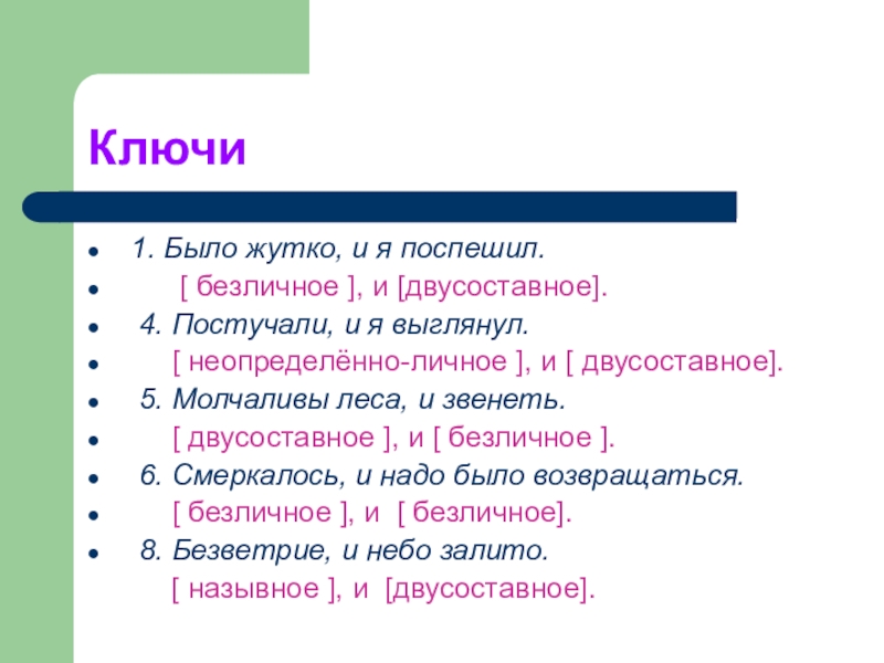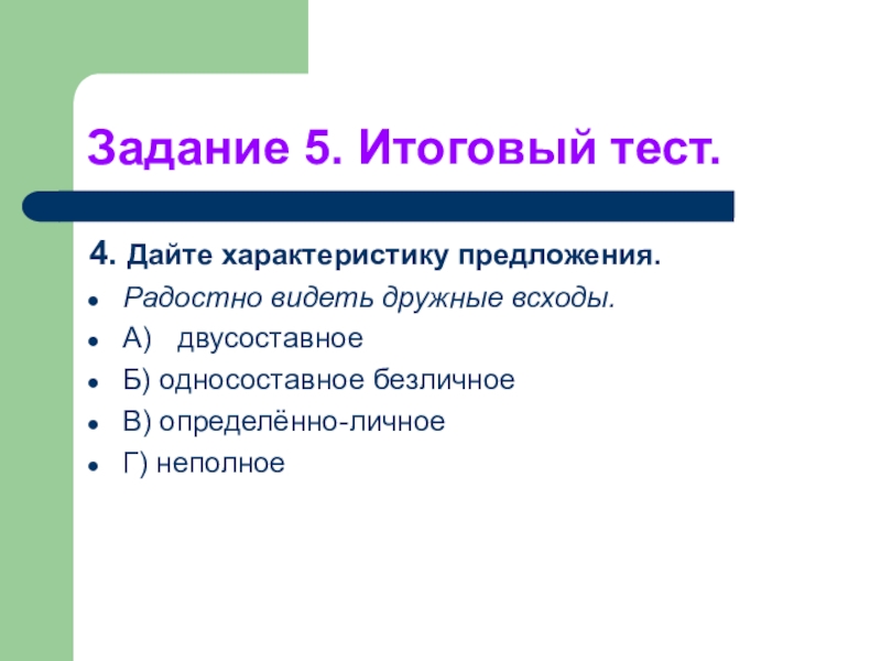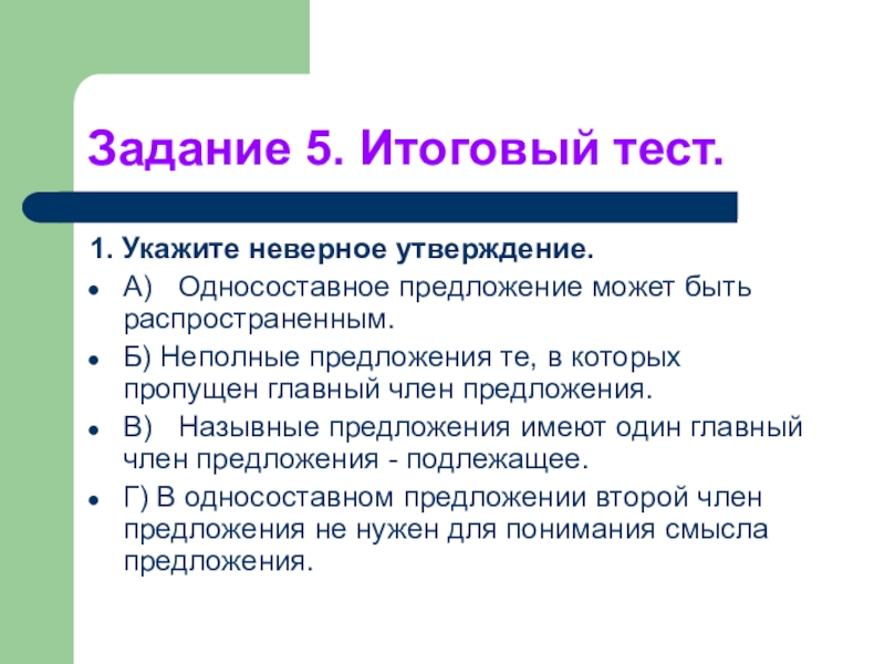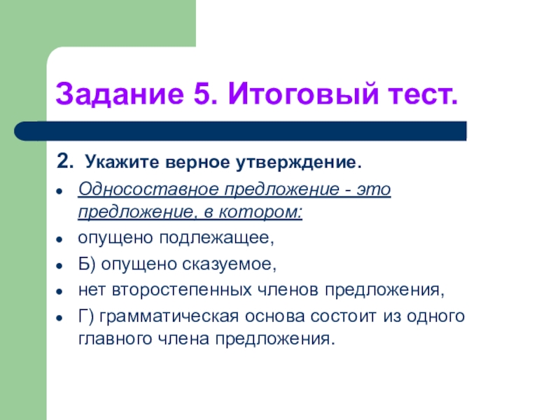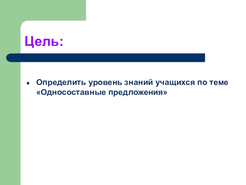 Определить уровень знаний учащихся по теме «Односоставные предложения»