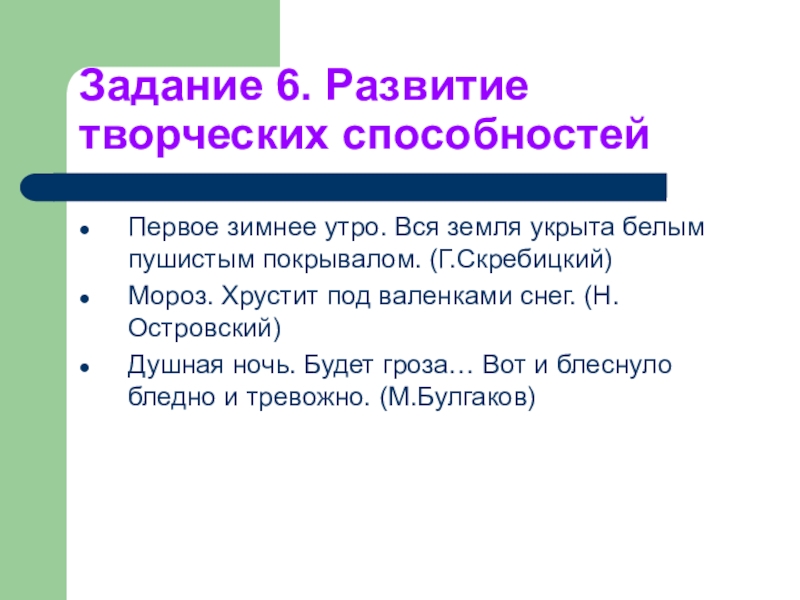 Душная ночь. Будет гроза… Вот и блеснуло бледно и тревожно. (М.Булгаков)