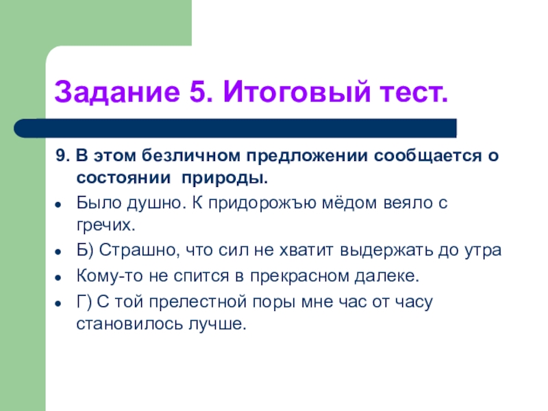Г) грамматическая основа состоит из одного главного члена предложения.