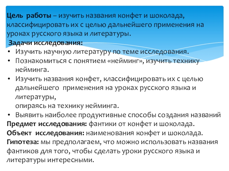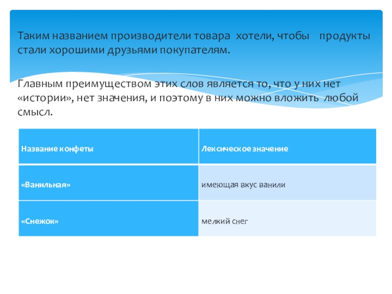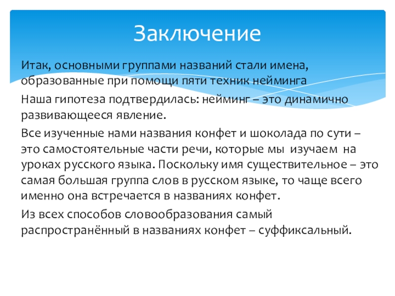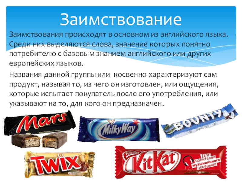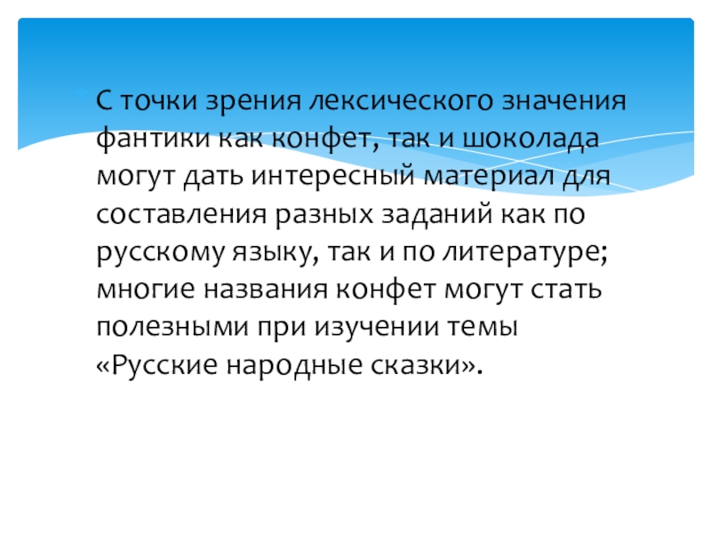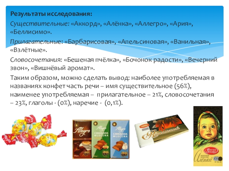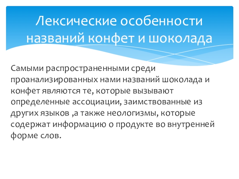 Лексические особенности названий конфет и шоколада