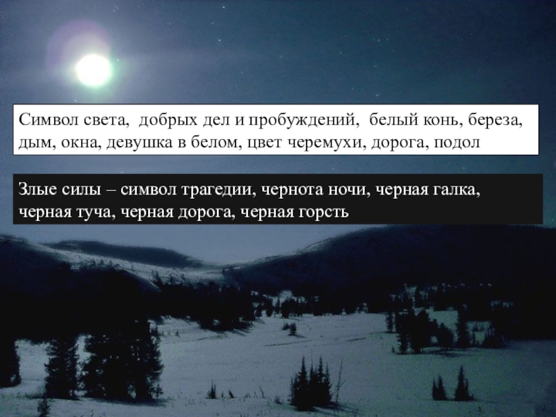 Символ света, добрых дел и пробуждений, белый конь, береза, дым, окна, девушка в белом, цвет черемухи, дорога, подол