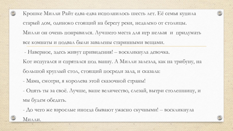 Слайд 11Крошке Милли Райт едва-едва исполнилось шесть лет. Её семья купила