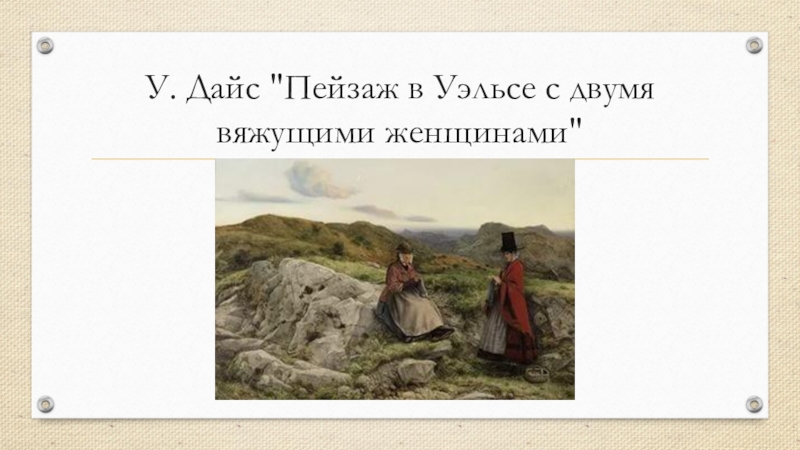 Слайд 16У. Дайс "Пейзаж в Уэльсе с двумя вяжущими женщинами"