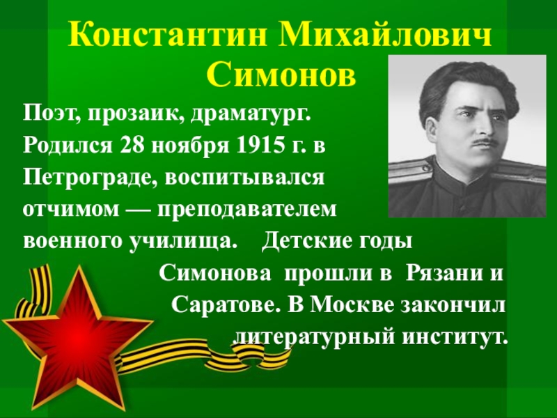 Константин Михайлович Симонов- военный корреспондент, солдат …
