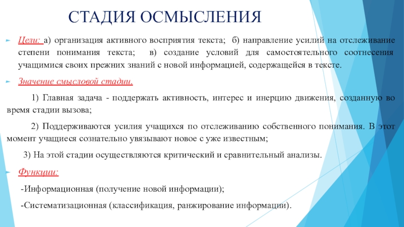 Слайд 13СТАДИЯ ОСМЫСЛЕНИЯ