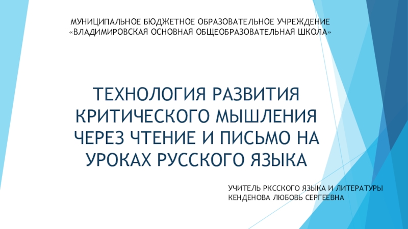 ТЕХНОЛОГИЯ РАЗВИТИЯ КРИТИЧЕСКОГО МЫШЛЕНИЯ ЧЕРЕЗ ЧТЕНИЕ И ПИСЬМО НА УРОКАХ РУССКОГО