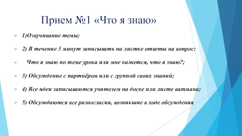 1) Происходит вызов того, что учащийся знает о данной теме.