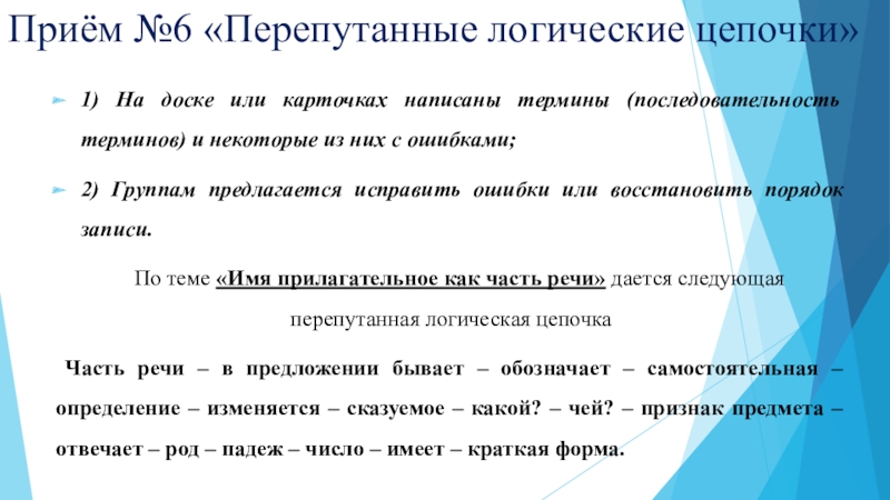 Слайд 12Приём №6 «Перепутанные логические цепочки»