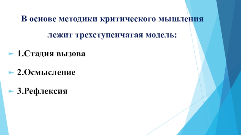 Слайд 6В основе методики критического мышления лежит трехступенчатая модель: