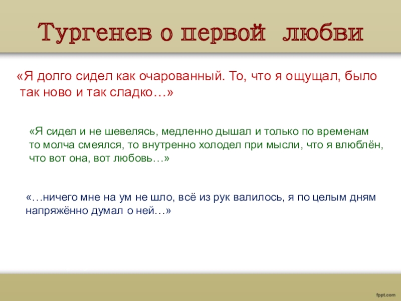 «Любовь даже не чувство – она болезнь… Обыкновенно она овладевает человеком без спроса, внезапно, против его воли – ни дать ни взять холера или лихорадка…»