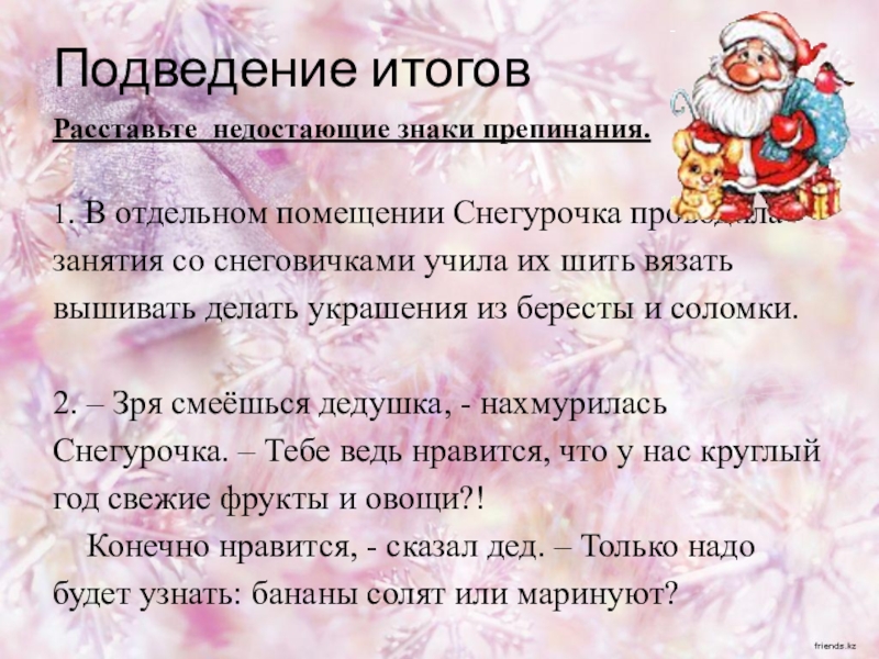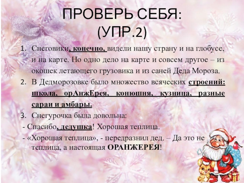 2. – Зря смеёшься дедушка, - нахмурилась Снегурочка. – Тебе ведь нравится, что у нас круглый год свежие фрукты и овощи?!