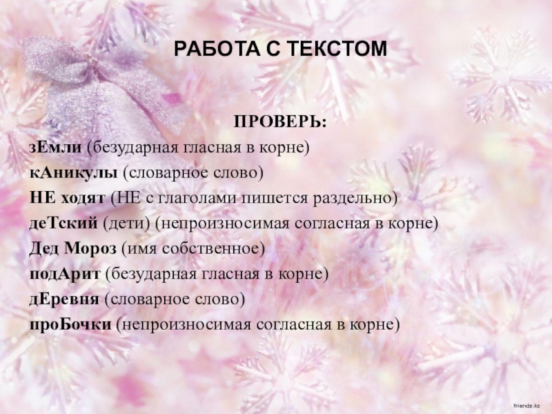 кАникулы (словарное слово)