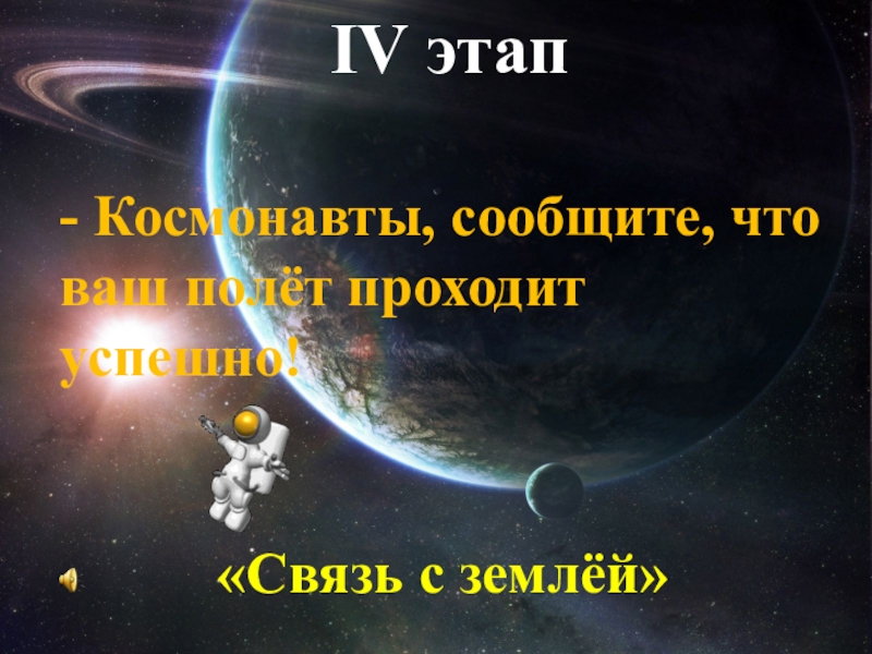 IV этап «Cвязь с землёй» - Космонавты, сообщите, что ваш полёт проходит успешно!