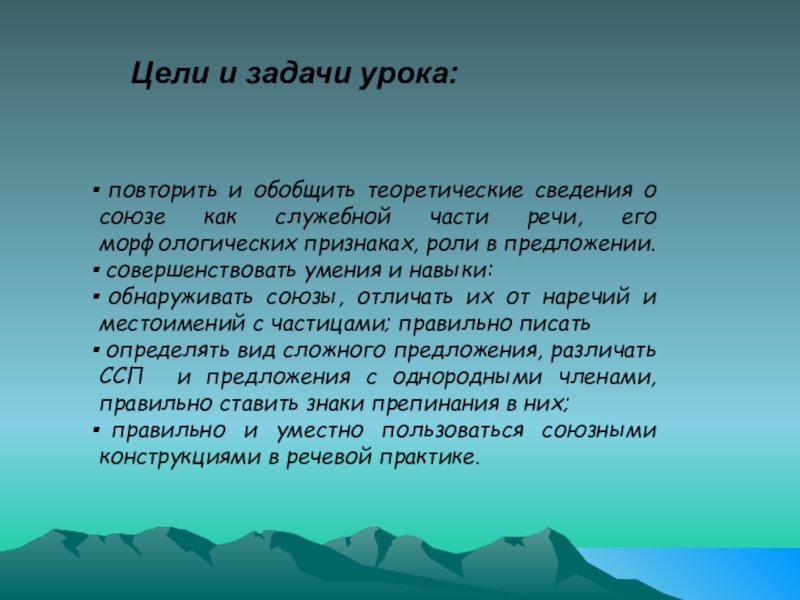 Слайд 2 повторить и обобщить теоретические сведения о союзе как служебной части