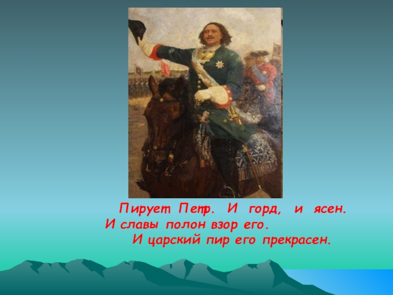 Слайд 9 Пирует Петр. И горд, и