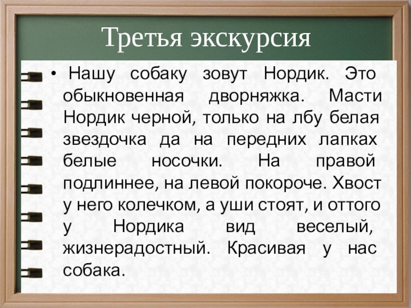 Нашу собаку зовут Нордик. Это обыкновенная дворняжка. Масти Нордик черной,