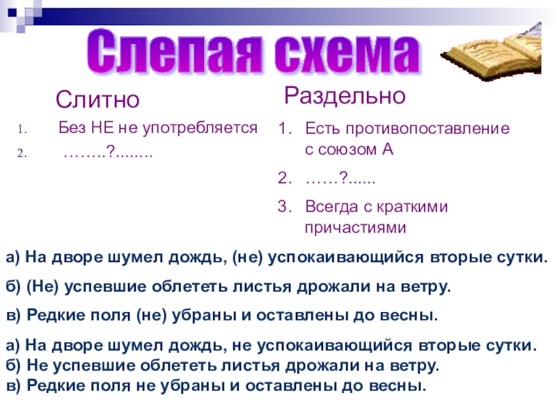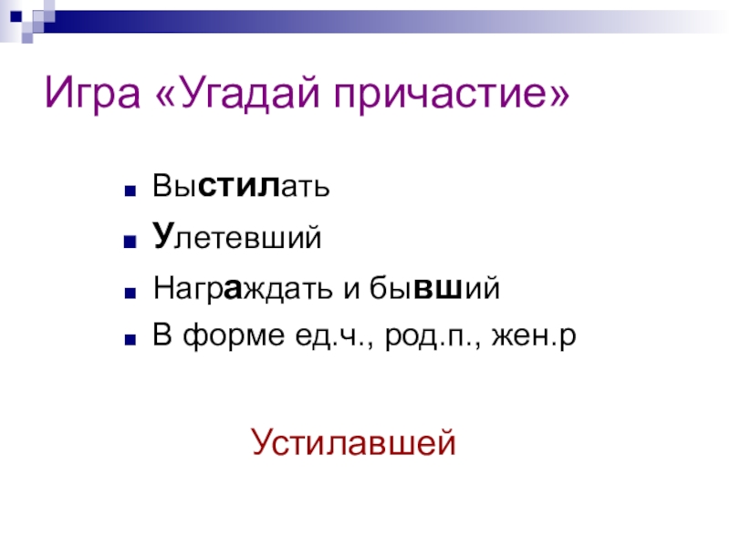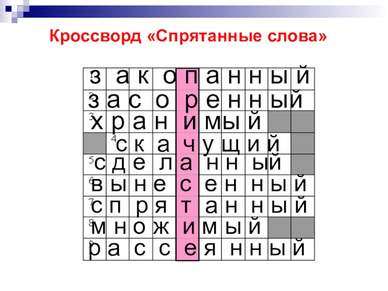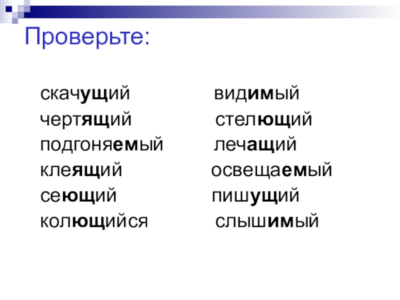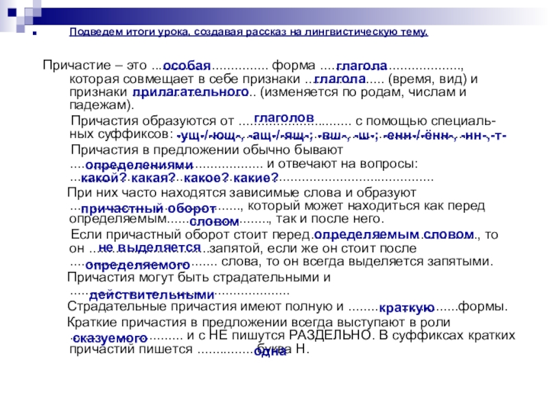 -ущ-/-ющ-, -ащ-/-ящ-; -вш-, -ш-; -енн-/-ённ-, -нн-,-т-