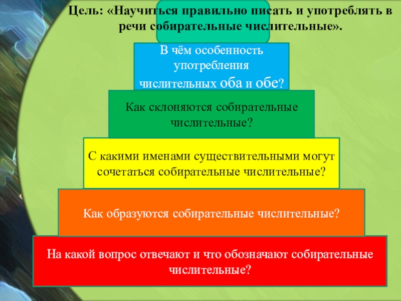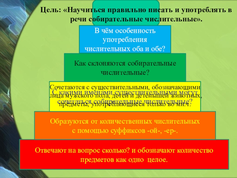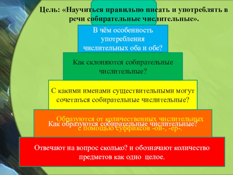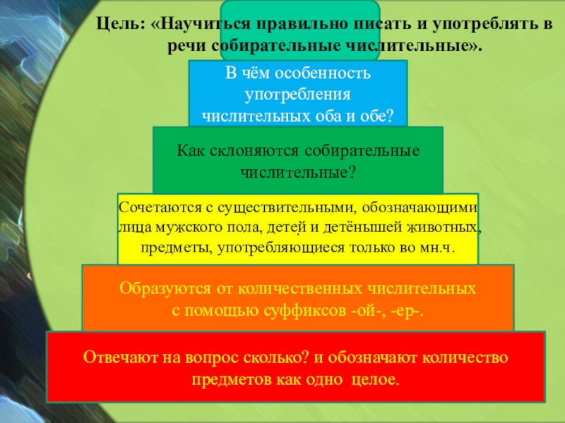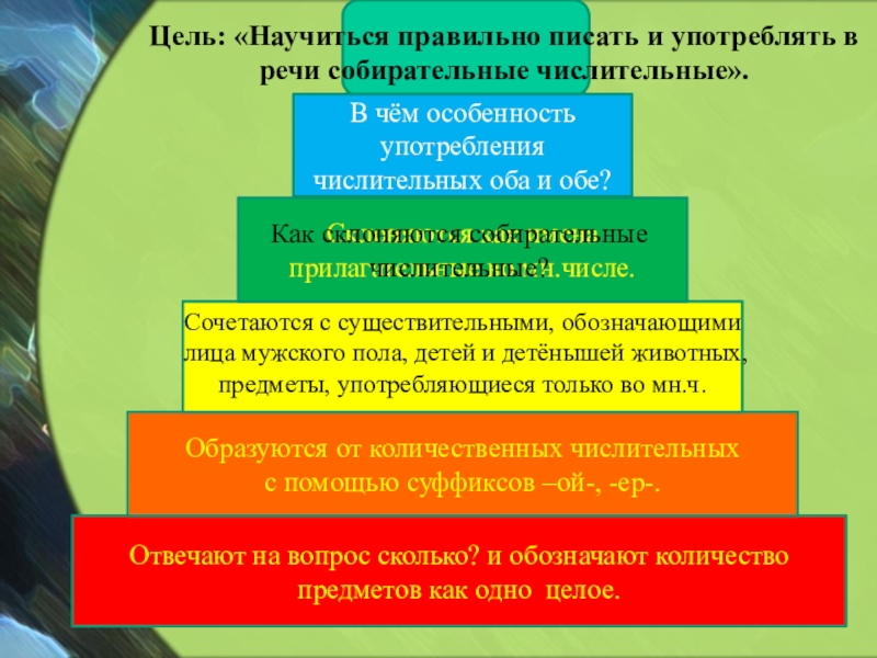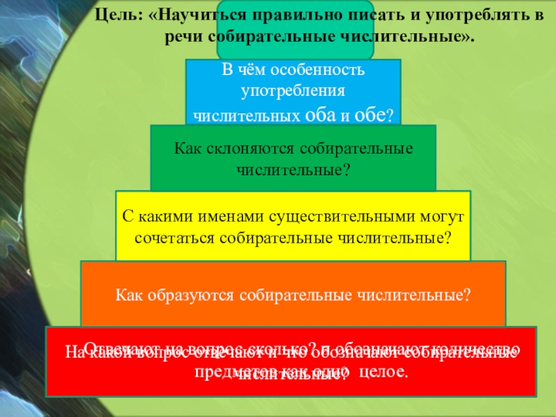 Отвечают на вопрос сколько? и обозначают количество предметов как одно целое.