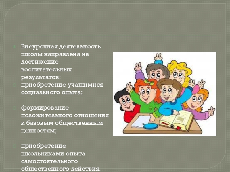 Слайд 2Внеурочная деятельность школы направлена на достижение воспитательных результатов:
