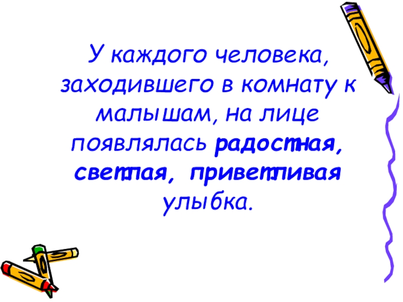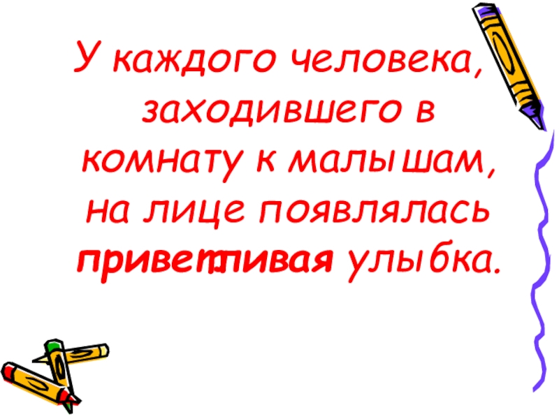 Слайд 13У каждого человека, заходившего в комнату к малышам, на лице появлялась