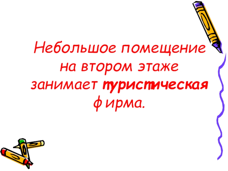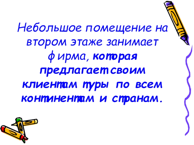 Слайд 23 Небольшое помещение на втором этаже занимает туристическая фирма.