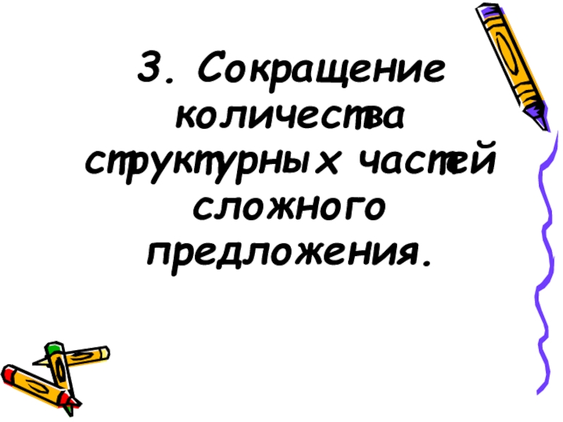 Слайд 27 3. Сокращение количества структурных частей сложного предложения.