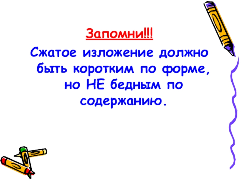 Сжатое изложение должно быть коротким по форме, но НЕ бедным по
