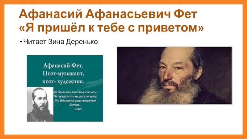 Слайд 5Афанасий Афанасьевич Фет «Я пришёл к тебе с приветом»