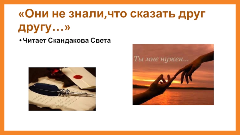«Они не знали,что сказать друг другу…»Читает Скандакова Света