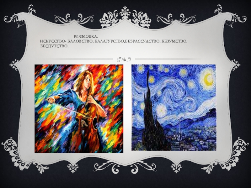 Рифмовка. Искусство- баловство, балагурство,безрассудство, безумство, беспутство.