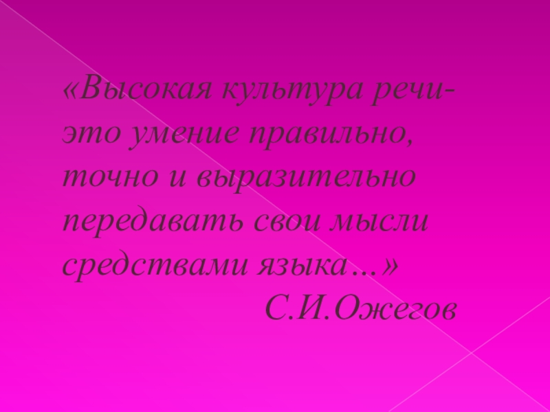 Слайд 2«Высокая культура речи- это умение правильно, точно и выразительно передавать свои