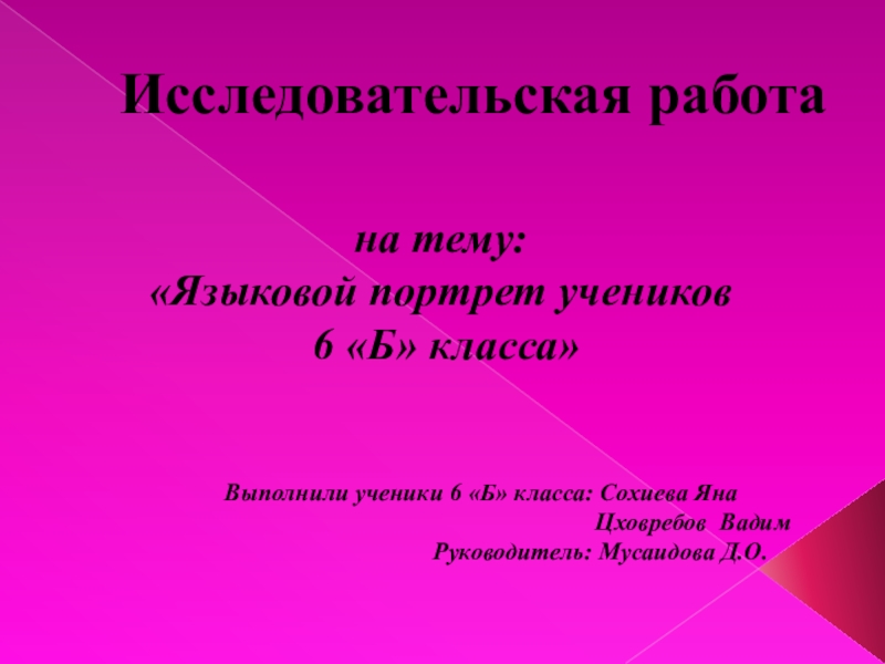 Выполнили ученики 6 «Б» класса: Сохиева Яна