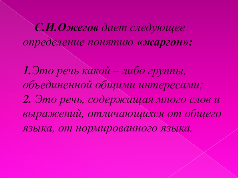 Слайд 9С.И.Ожегов дает следующее определение понятию «жаргон»: