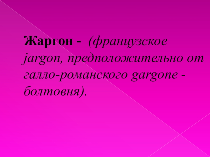 Слайд 8Жаргон - (французское jargon, предположительно от галло-романского gargone - болтовня).
