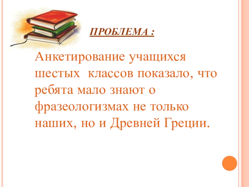 мы обозначили проблему нашего исследования. Она состоит в том, что мы мало знаем о фразеологизмах древней Греции.