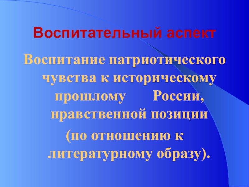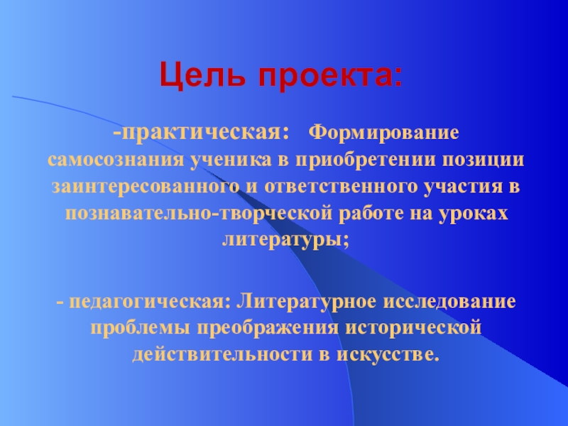- педагогическая: Литературное исследование проблемы преображения исторической действительности в искусстве.