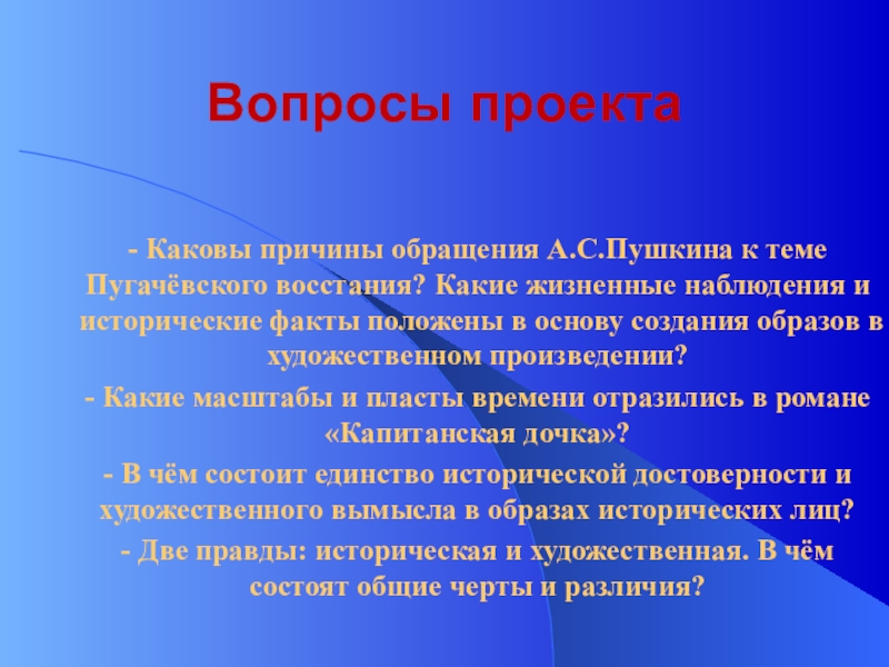 - Каковы причины обращения А.С.Пушкина к теме Пугачёвского восстания? Какие