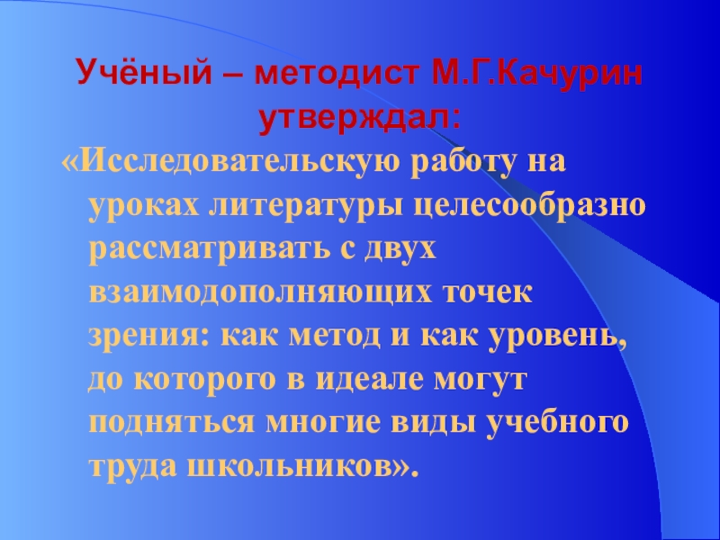 Слайд 6Учёный – методист М.Г.Качурин утверждал:
