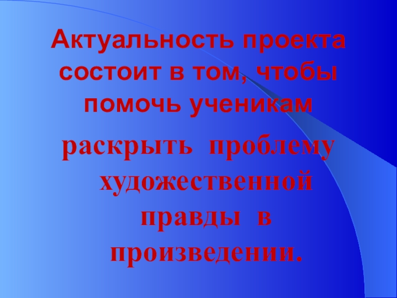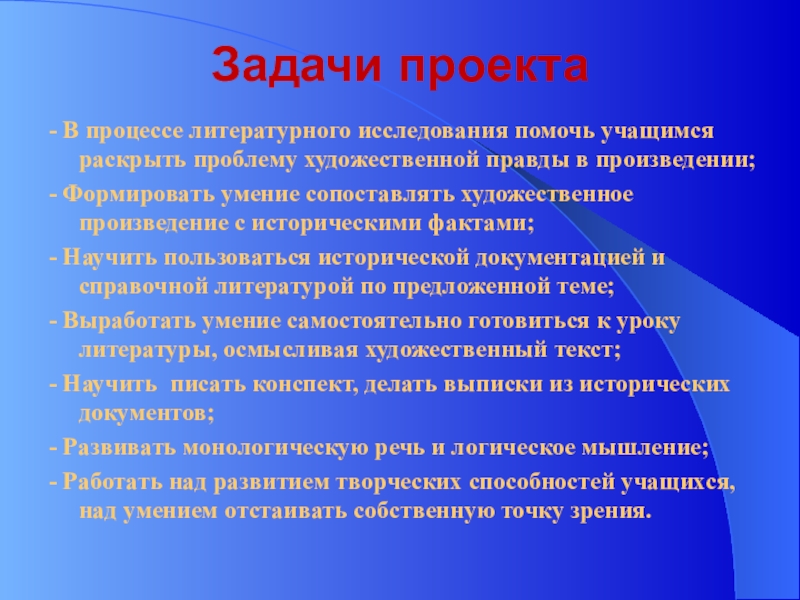 - В процессе литературного исследования помочь учащимся раскрыть проблему художественной