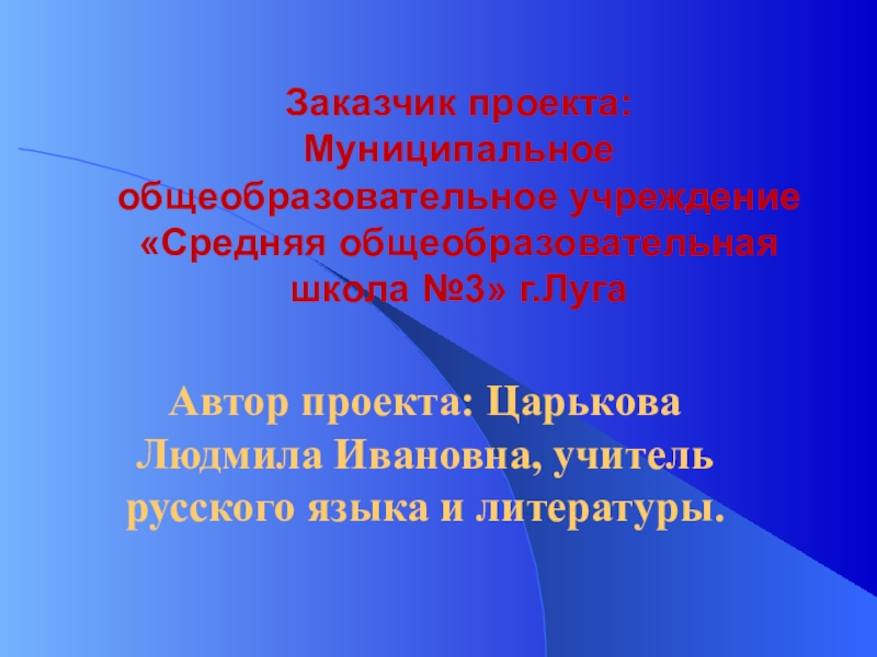 Царькова Людмила Ивановна, учитель русского языка и литературы.