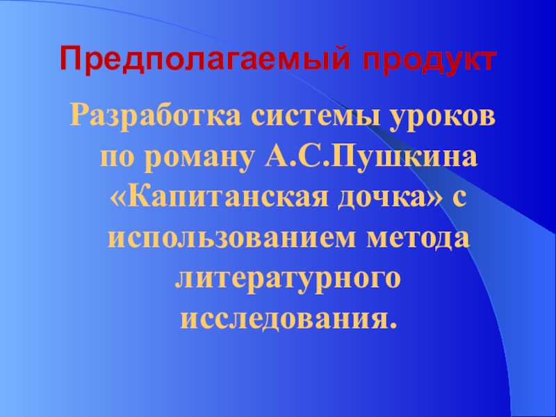 Разработка системы уроков по роману А.С.Пушкина «Капитанская дочка» с