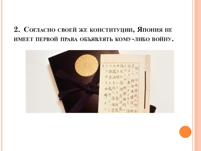 2.	Согласно своей же конституции, Япония не имеет первой права объявлять кому-либо войну.