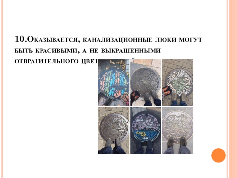 Слайд 1810.Оказывается, канализационные люки могут быть красивыми, а не выкрашенными отвратительного цвета